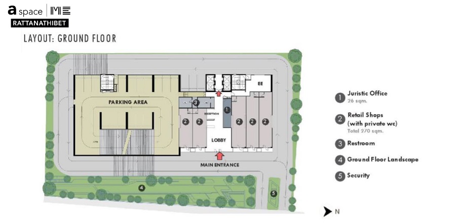 2nd Floor – Juristic Office, Retail Shops, Restrooms, Security, Landscape
