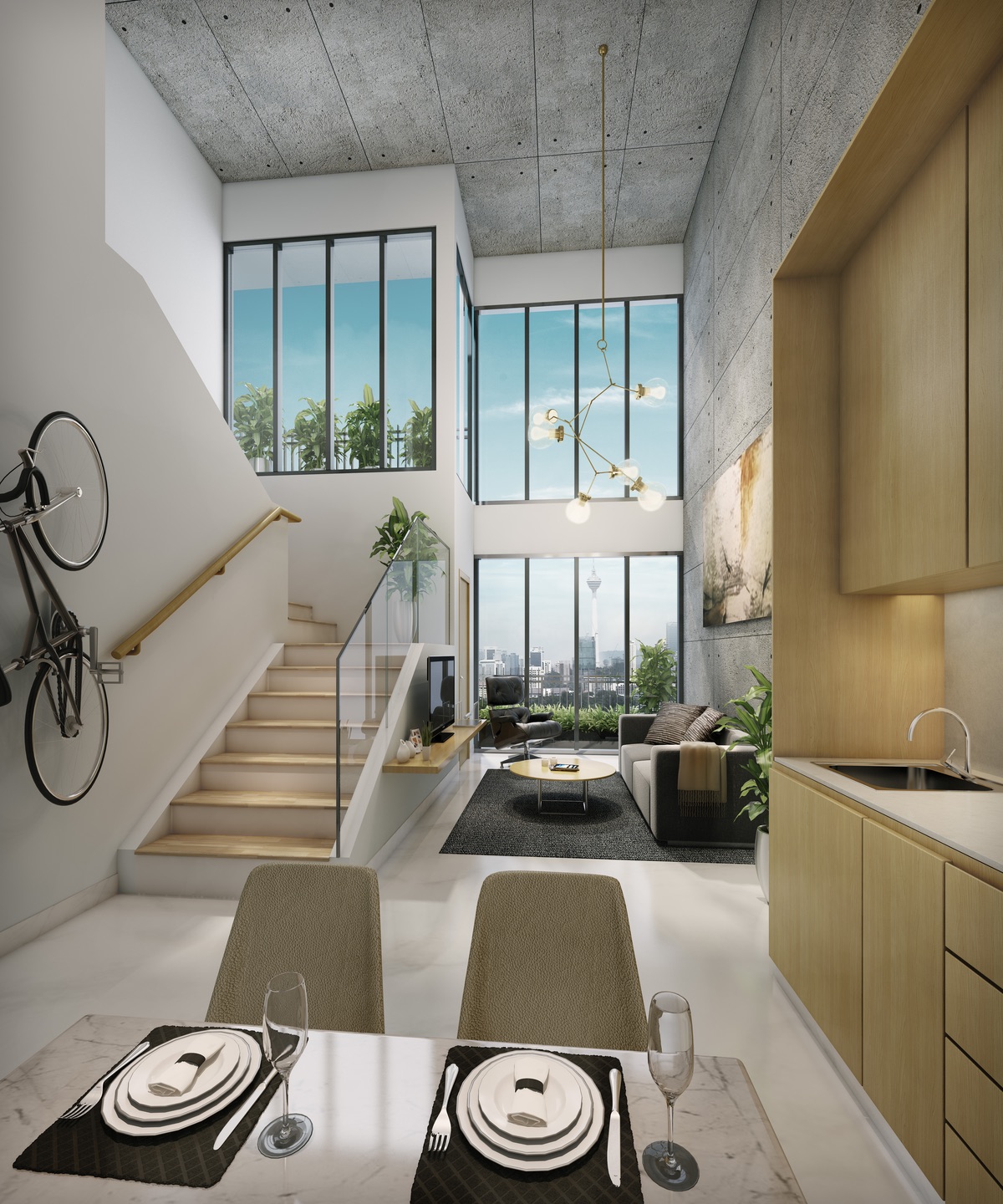 - Super Tall 43-storey high building with infinity pool at very high floor and unblocked view of Petronas Twin Towers