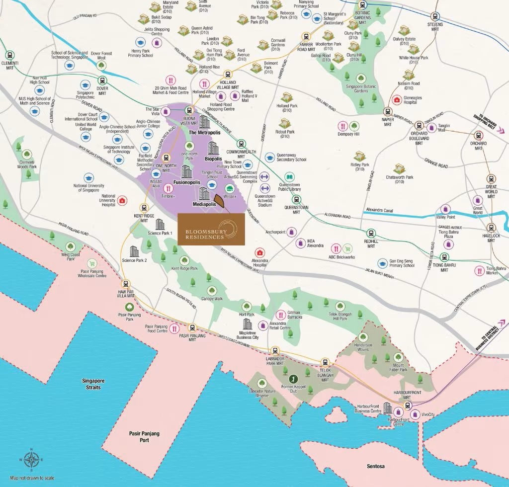 Families will appreciate Bloomsbury Residences' proximity to reputable schools and educational institutions. Within a short distance, you'll find schools such as Anglo-Chinese School (Independent), Fairfield Methodist School, and the prestigious National University of Singapore (NUS) are all within a short distance, making this an ideal location for families looking for quality education options.