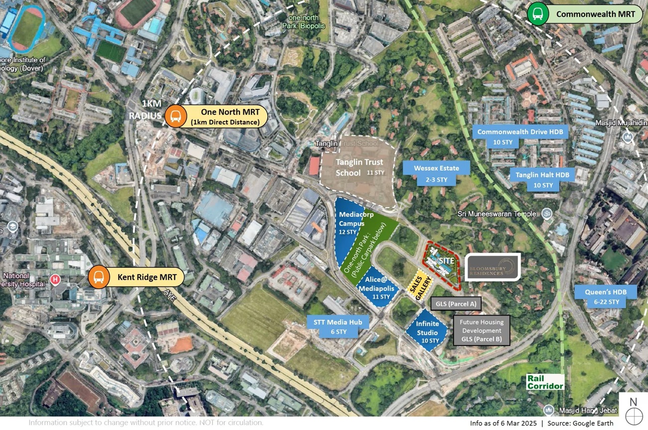 Nestled in the vibrant and prestigious One North district, Bloomsbury Residences offers an extraordinary living experience in the heart of Singapore's technology and media hub. Strategically located along Media Circle in District 5, this new luxury condominium development seamlessly blends modernity, sophistication, and convenience. Jointly developed by the reputable Qingjian Realty and Forsea Holdings, Bloomsbury Residences promises a lifestyle defined by elegance, innovation, and unparalleled connectivity.