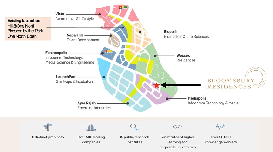 Bloomsbury Residences Mixed Use Development with Shops At Mediapolis & One North area, the "Silicon Valley of Singapore" VVIP Earlybird Pricing - only $1.3M for 2 bedroom!