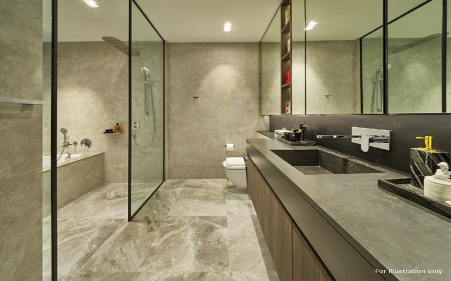 Be the consummate host with the Italian-designed and made Ernestomeda kitchen system that rises to every occasion. Designer brand Miele provides the hood, hob and oven, while the integrated fridge and washer-dryer are from De Dietrich. The 1-bedroom, 1-bedroom + study and 3-bedroom premium units also feature a hidden surprise: a versatile pull-out counter that can serve as an extended food preparation area, dining table, or work-from-home station should the need arise.