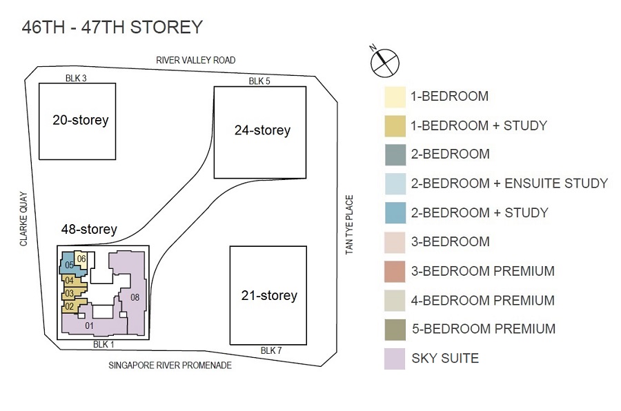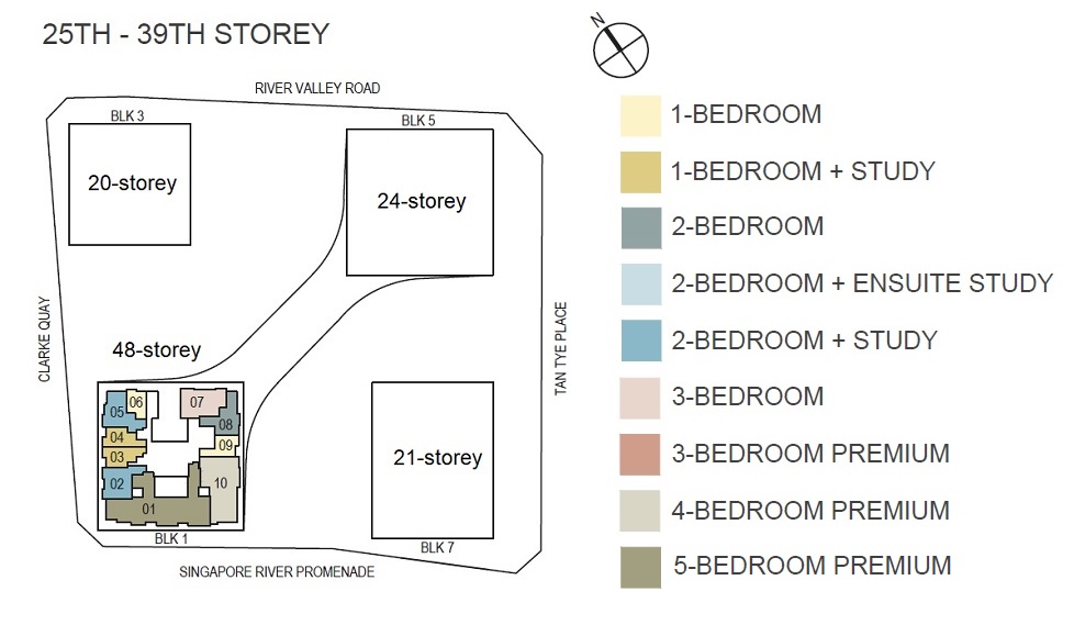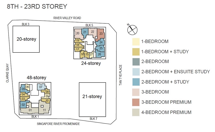 Siteplan for Level 8 to 23 (Level 24 is one of the facilities deck with the sky bridge linking Block 1 & 5)