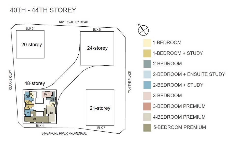 Siteplan for Levels 40 to 44 (Level 45 is one of the facilities deck)