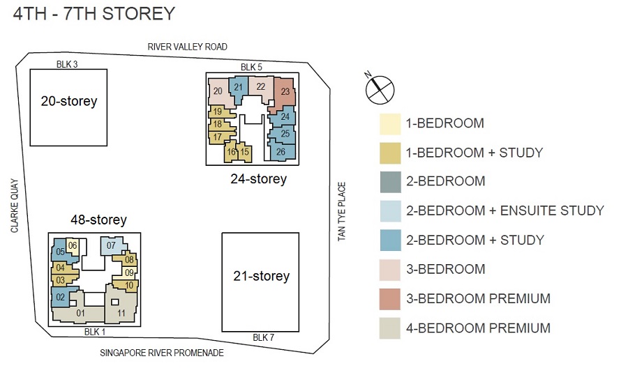 Siteplan for Levels 4 to 7 (B1, L1 & L2 are the shopping, Level 3 is one of the facilities deck