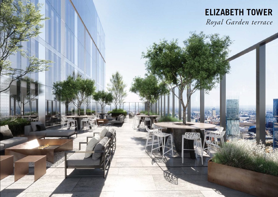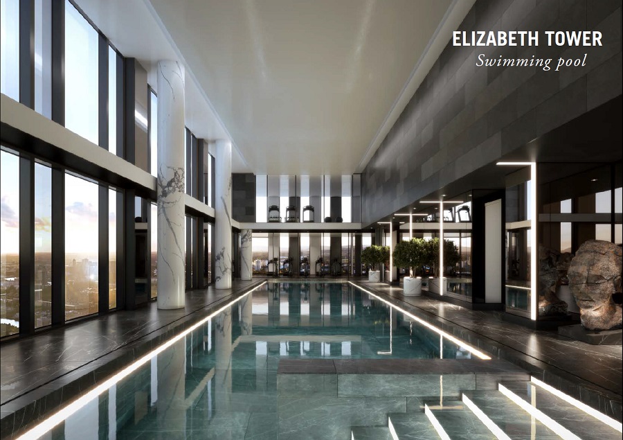 Luxurious Facilities on 16th, 44th and 45th Floors : 22m Swimming pool, Sky garden on 44th floor of Elizabeth Tower & 16th floor of Victoria Residence, Gym, Co-working space and communal hub, Resident's lounge
