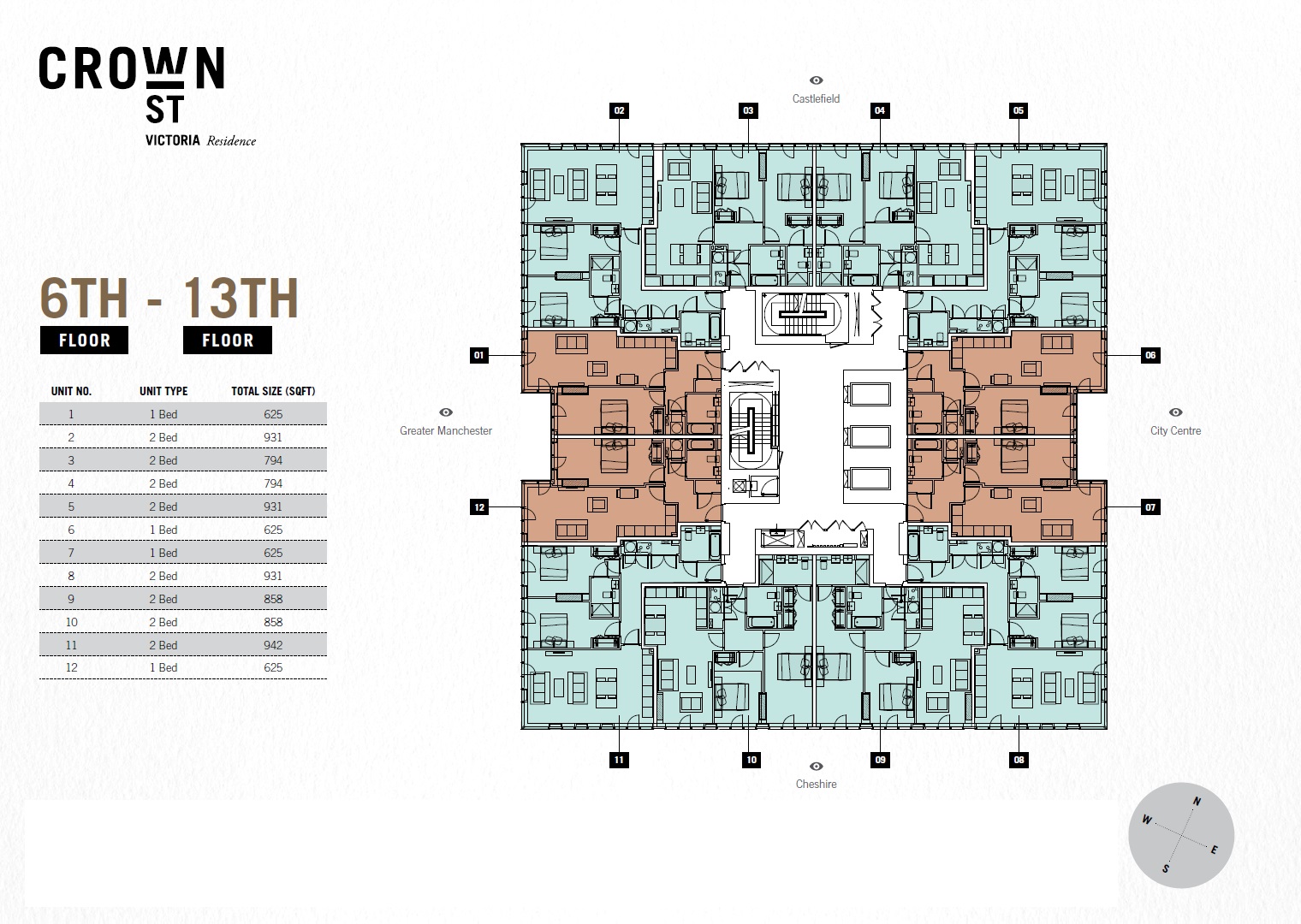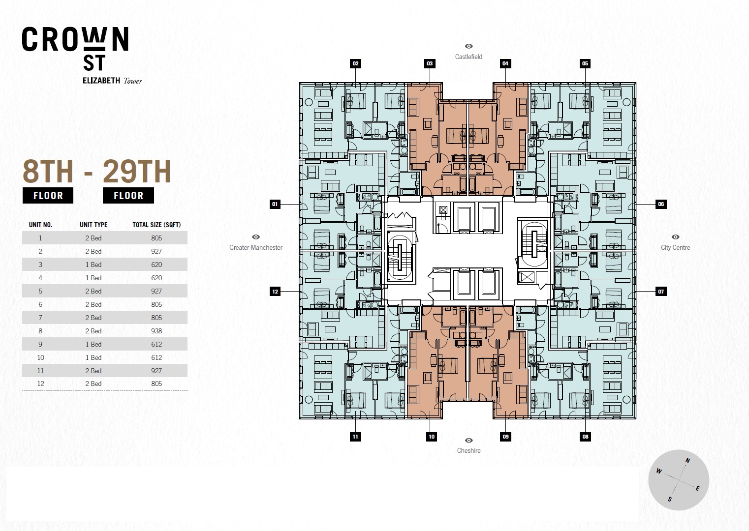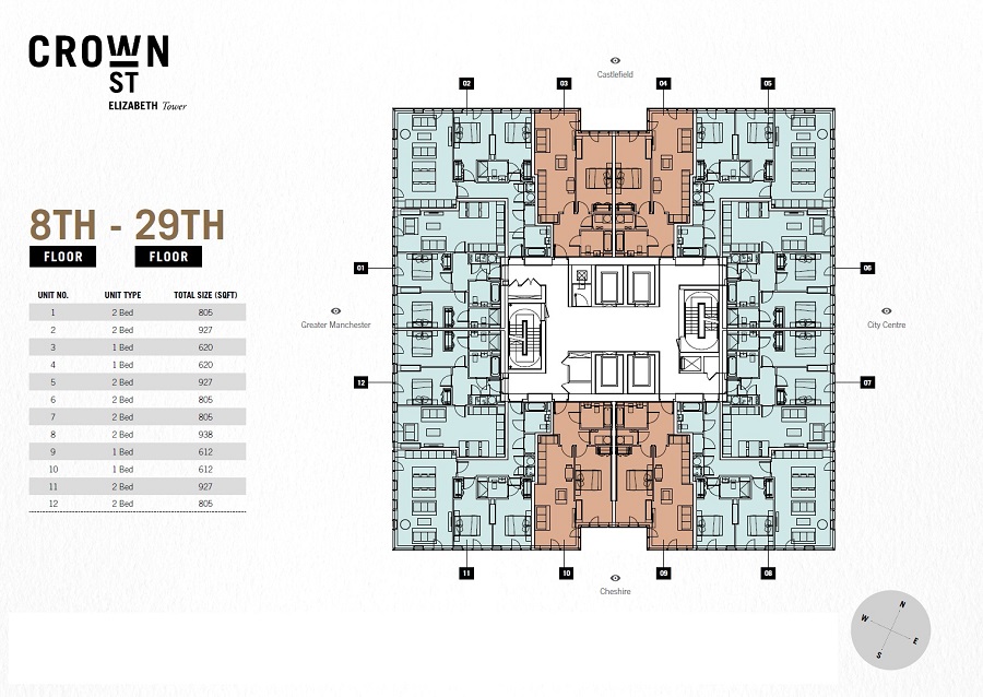 Unit Types at Crown Street Manchester