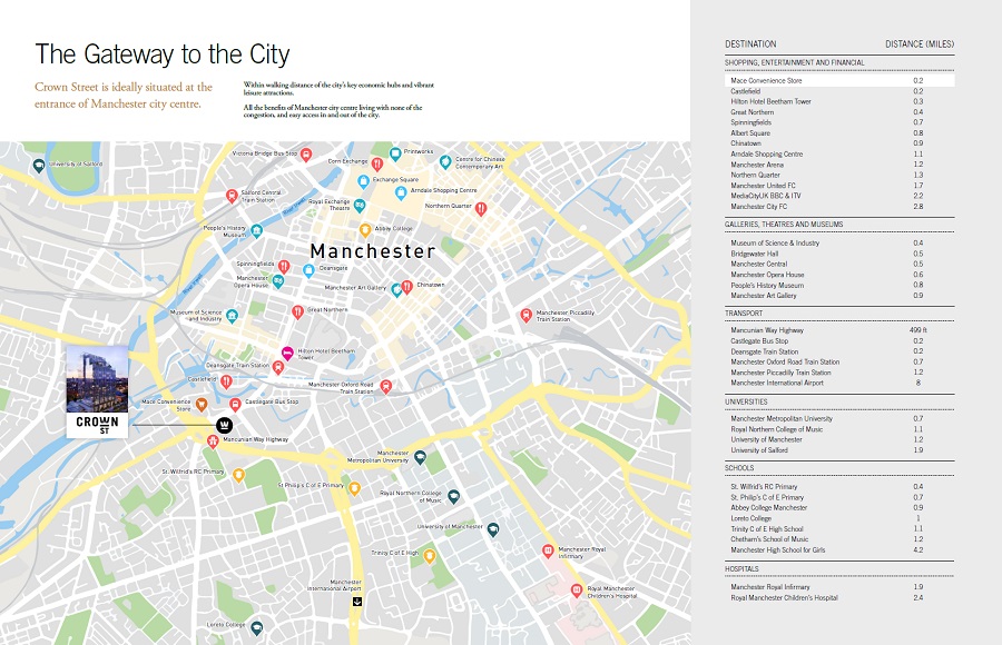 Crown Street is the highly sought after development that will complete Manchester City Centre's Eagerly Awaited New Neighbourhood - the "Super Tower District" and Manchester's new masterplanned neighbourhood undergoing regeneration and enhancement.