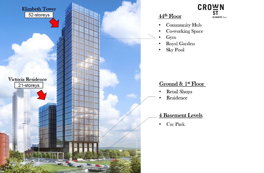 Number of floors : 52-storeys (Elizabeth Tower) & 20-storeys (Victoria Residence)