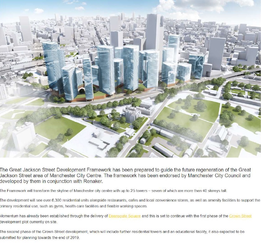 Crown Street is located within the Great Jackson Framework which is the new masterplan to develop this new "Super Tower District" at the entrance to Manchester city center into the most vibrant and sought after residential and commercial address in Manchester.