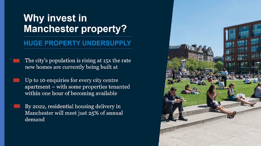 Crucially, Manchester's population is rising at 15 times the rate new homes are currently being built at. The result is one of the UK's most undersupplied property markets – creating a significant opportunity for investors.