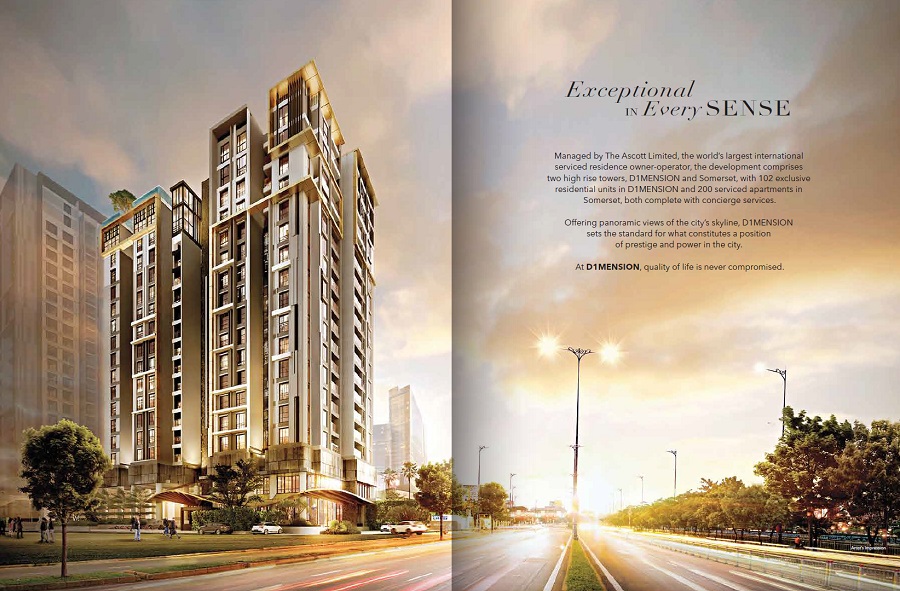 Managed by The Ascott Limited, the world's largest international serviced residence owner-operator, the development comprises two high rise towers, D1MENSION and Somerset, with 102 exclusive residential units in D1MENSION and 200 serviced apartments in Somerset, both complete with concierge services.