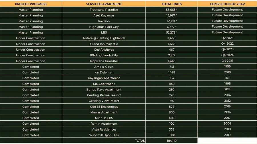 Growing Population - There are a total of 184,110 residential units at the top and midhill of Genting Highlands. Based on the average family size of 4 people in Malaysia, the population of Genting Highlands is estimated to be about 736,440 people.