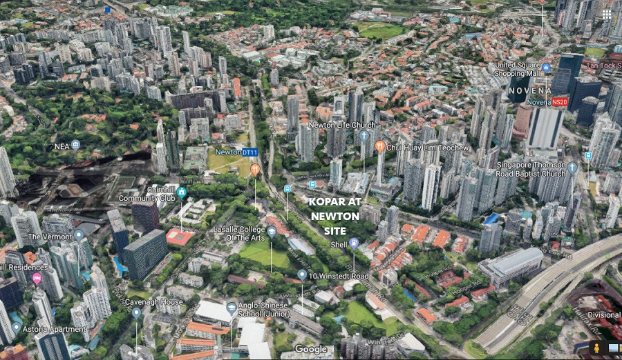 Sitting on the edge of the Orchard Road shopping and tourism precinct, within Singapore's prime district 09, Kopar at Newton is surrounded by mainly other high-end residential condominiums, and some low-rise landed housing.