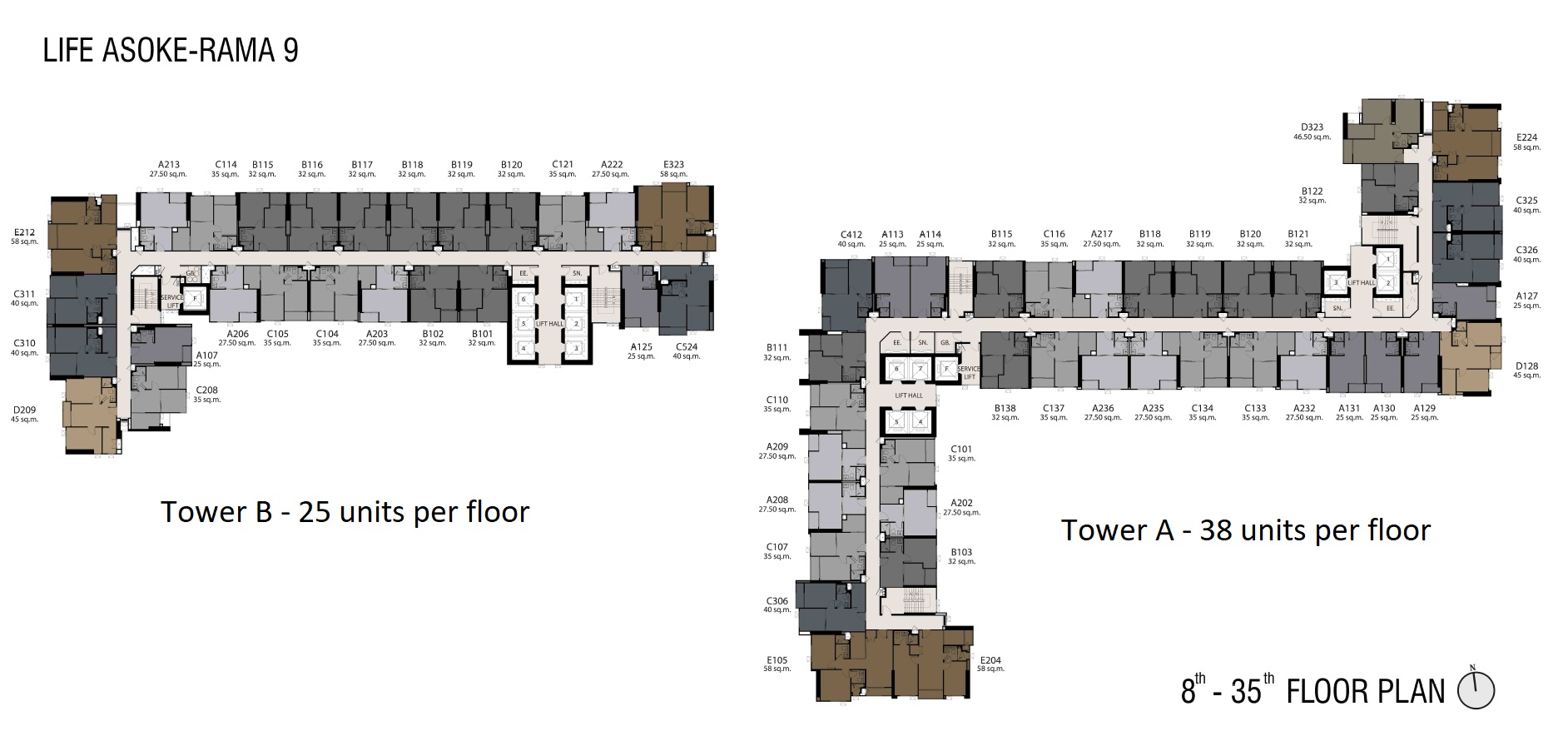 - No. of Levels : Tower A ( 7-41 Floor) & Tower B (7-44 Floor)