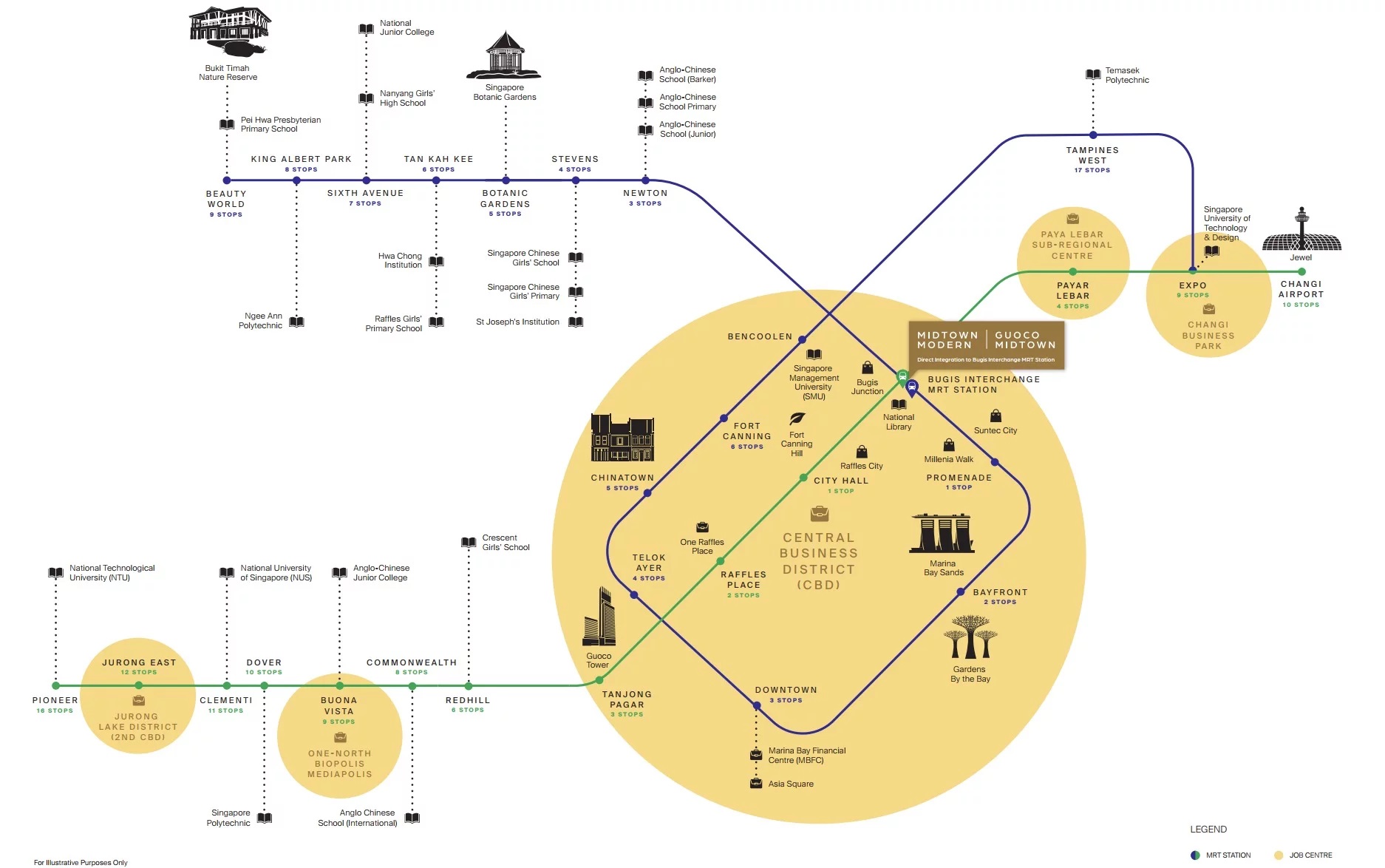 Very accessible to every part of Singapore via the East-West MRT line and Downtown MRT line