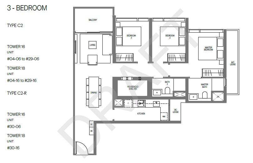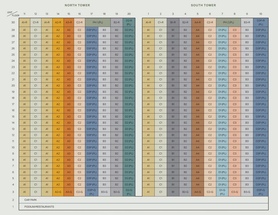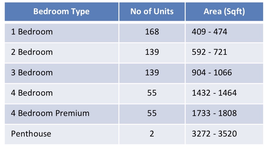 Number of Units : 558 units over 2 towers of 30-storeys in a mixed development with 21 F&B/restaurants on ground floor and residential above