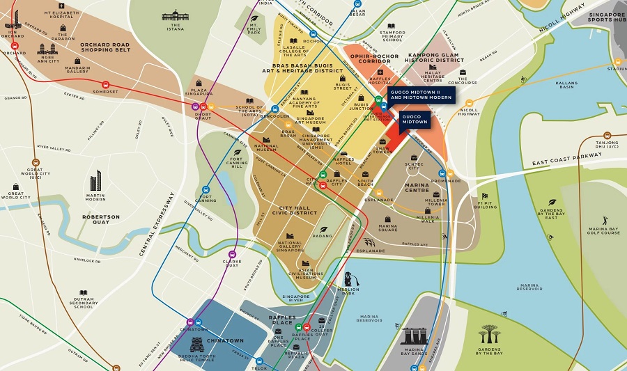 Midtown Modern is located at Tan Quee Lan Street in Singapore District 7. Be part of Bugis and Beach road transformation as Midtown Modern condo is set to be part of this transformation to bring more life into it with commercial and residential components. This address at Tan Quee Lan street is well established as a vibrant location with Bugis Junction, Bugis+, Bugis village and other entertainment just nearby.