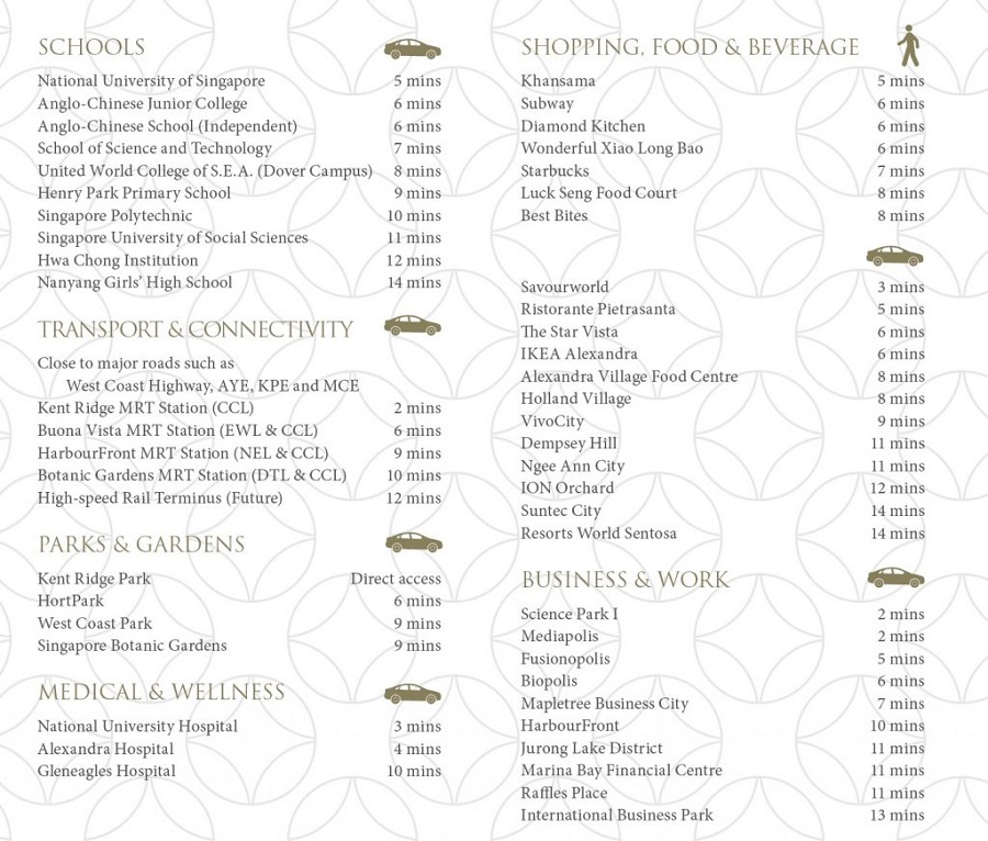 • Kent Ridge MRT (CC24) 1.15km - FOC shuttle bus provided (about 2 minute ride)
