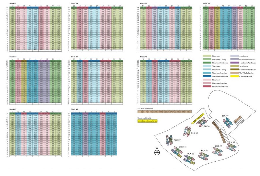 1- to 5-bedroom units, Penthouses as well as 22 villas homes with private parking lots & direct pool access