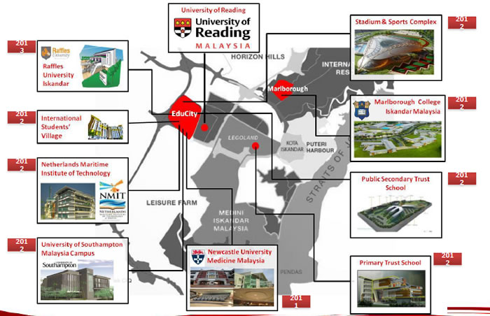 • EduCity, with renowned colleges from Singapore, Netherlands, UK, US
