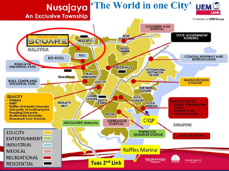 1) Nusajaya is the biggest integrated development in Southeast Asia ("The World in One City") attracting interest from corporate foreign investors/companies from USA, Holland, Japan, India, China, Taiwan, etc.