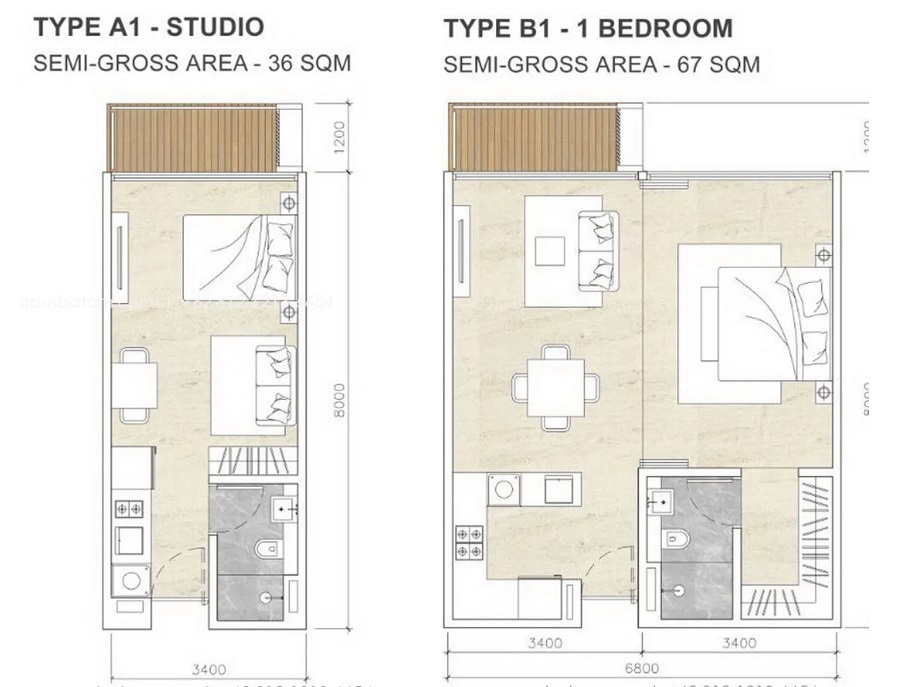 Studio (36sqm / 387sqft) from Rp880mil / about SGD$80K / about USD$57K