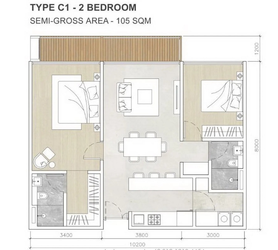 2 Bedroom (114sqm / 1227sqft) from Rp2.1bil / about SGD$225K / about USD$167K