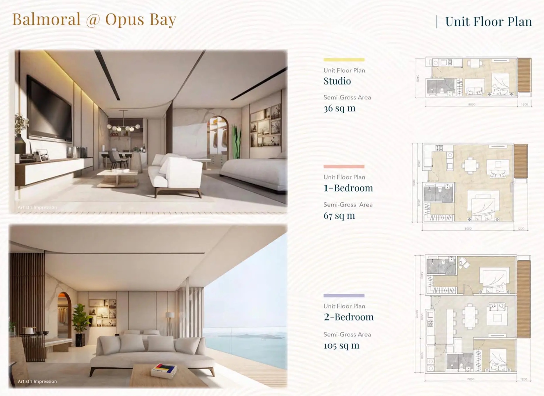 Ardmore, Balmoral & Claymore are right next to the new Batam Waterfront Ferry Terminal and just minutes away on foot to the exclusive Club House created for the Opus Bay Community. Though our apartments are surrounded by a variety of high-traffic retail establishments, Opus Bay cares for the safety of our apartment residents. These apartments will be within a gated community coupled with smart home features for your convenience. There will also be basic facilities such as a pool and gym should you decide not to head over to the Club House. Our apartments will be managed by our own Hospitality and Property Management arm because we take pride in our projects and do all we can to keep them it in their best condition. With choice options from Studio apartments to 3 bedroom units, these apartments are ideal for investors and also working singles or couples looking for affordable homes.