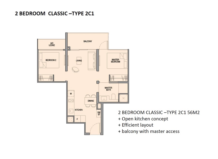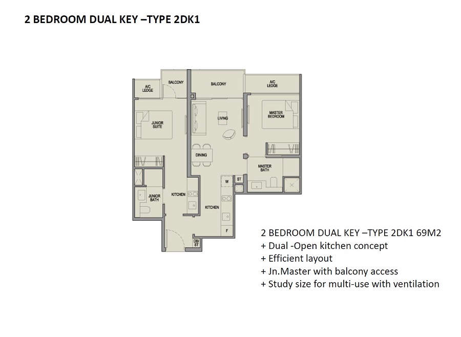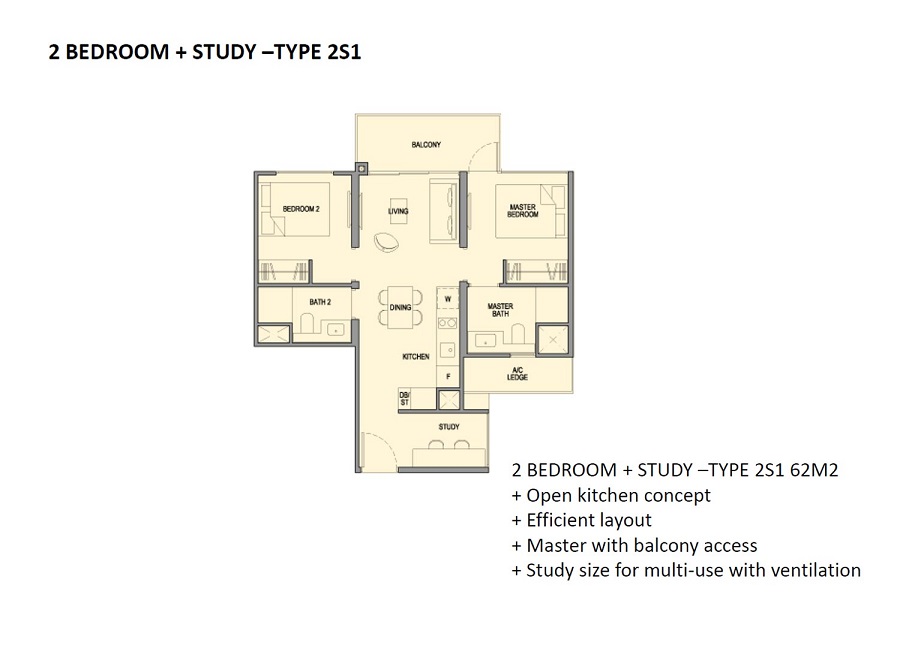 2 Bedroom + Study (700-872sqft) from $1,146,000