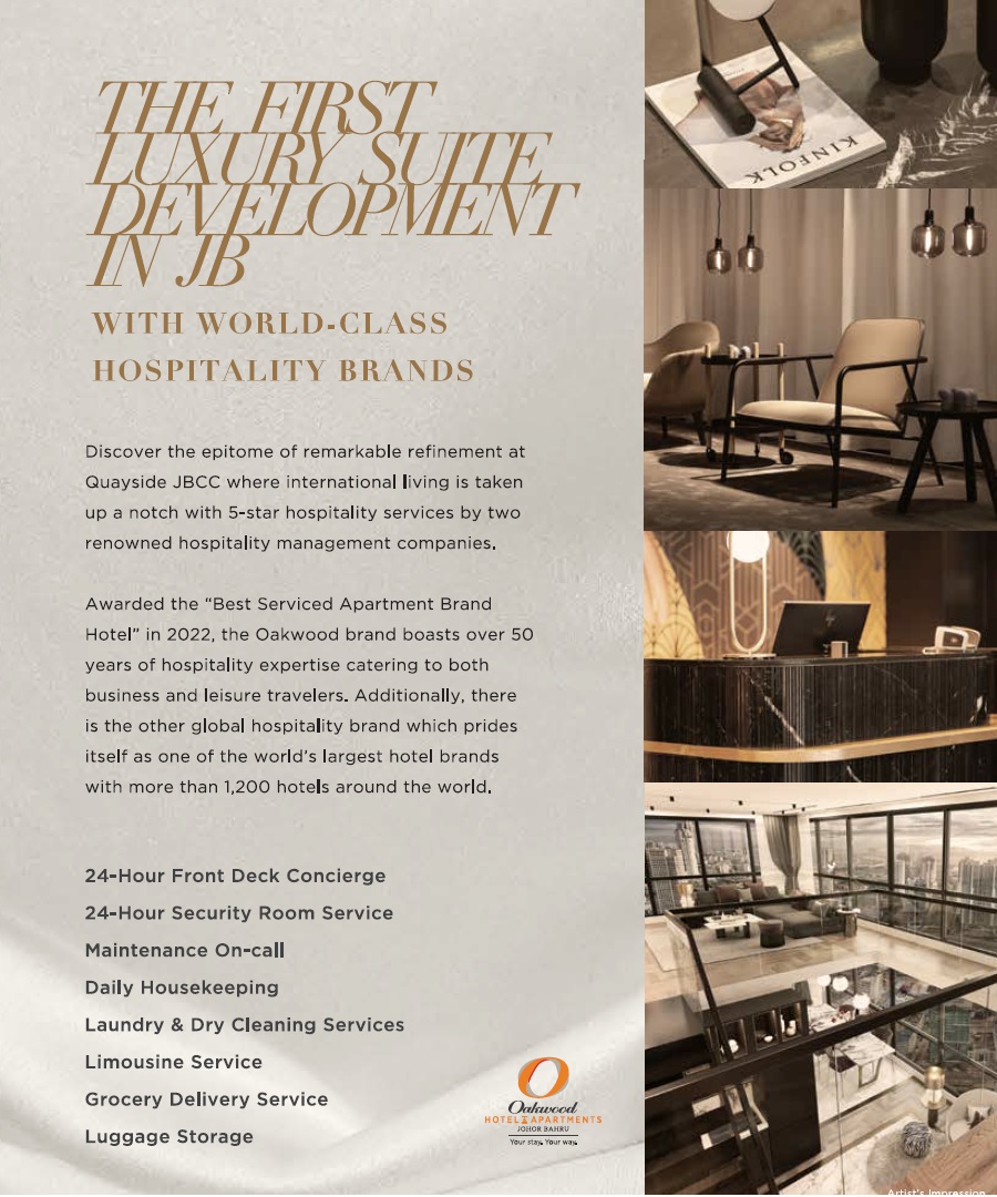 Managed by two renowned international hotel and service apartment brands, Quayside JBCC aims to meet the needs of business travellers and fill the gap with the current shortage of international brand hotels in the JB city center.