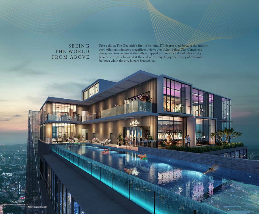 Quayside JBCC will set a benchmark standard above other serviced residences and become one of the most iconic buildings in Malaysia and Singapore by featuring Malaysia's first cantilever sky pool, which is about 30 meters in length.