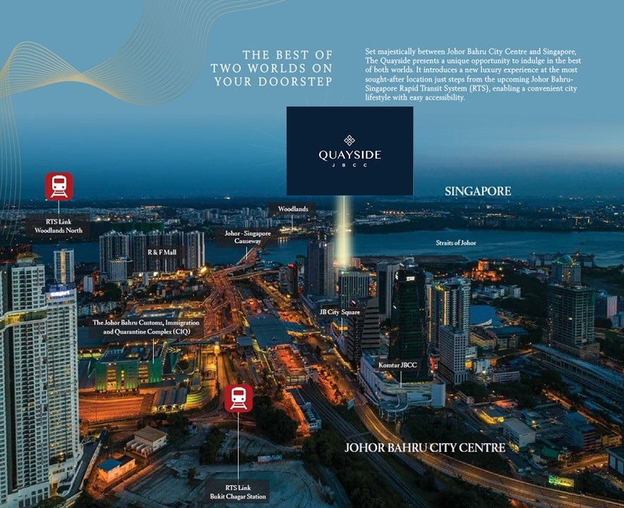 Quayside JBCC is about an 8-minute walk to the upcoming RTS station (Rapid Transit System/MRT connecting Singapore and Malaysia).