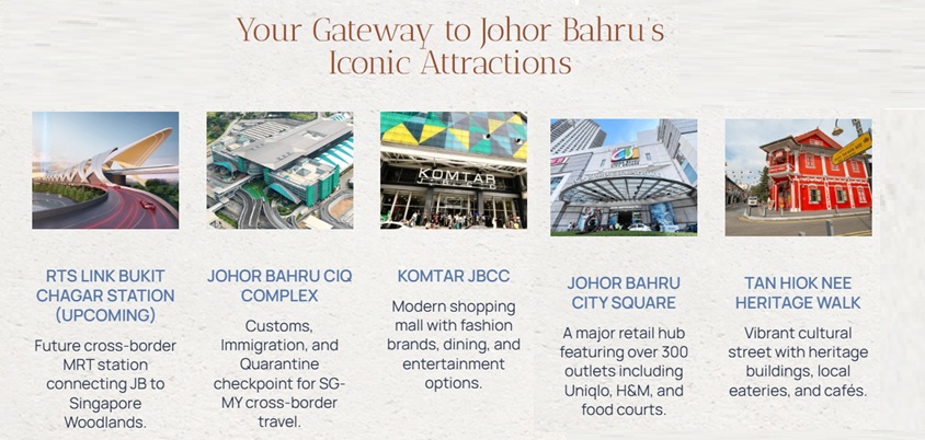 With about 350,000 daily inflow of people between the CIQ checkpoint in JB to Singapore - mainly for work, business, shopping, leisure and education - there is a strong demand for serviced apartments. And this is expected to increase especially when the RTS (Rapid Transit System) / MRT between Singapore and Malaysia is completed in 2026.