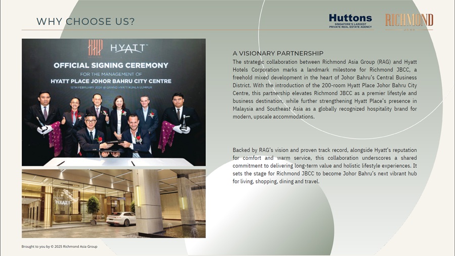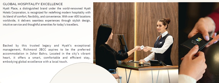 First in JB for a mixed use development with 2 International Hotel Brands operating - HYATT and winner of "Best Serviced Apartment" in 2022)