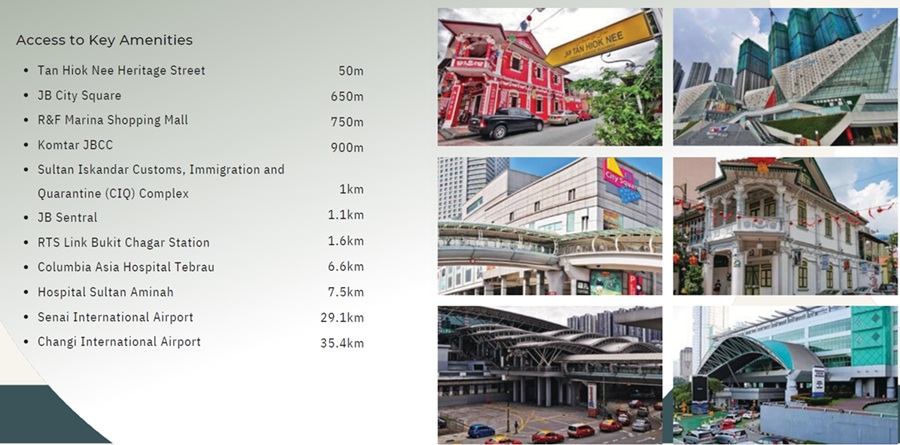 Strategically located only about 1km from the CIQ/Customs Checkpoint, the first gateway between Malaysia and Singapore,