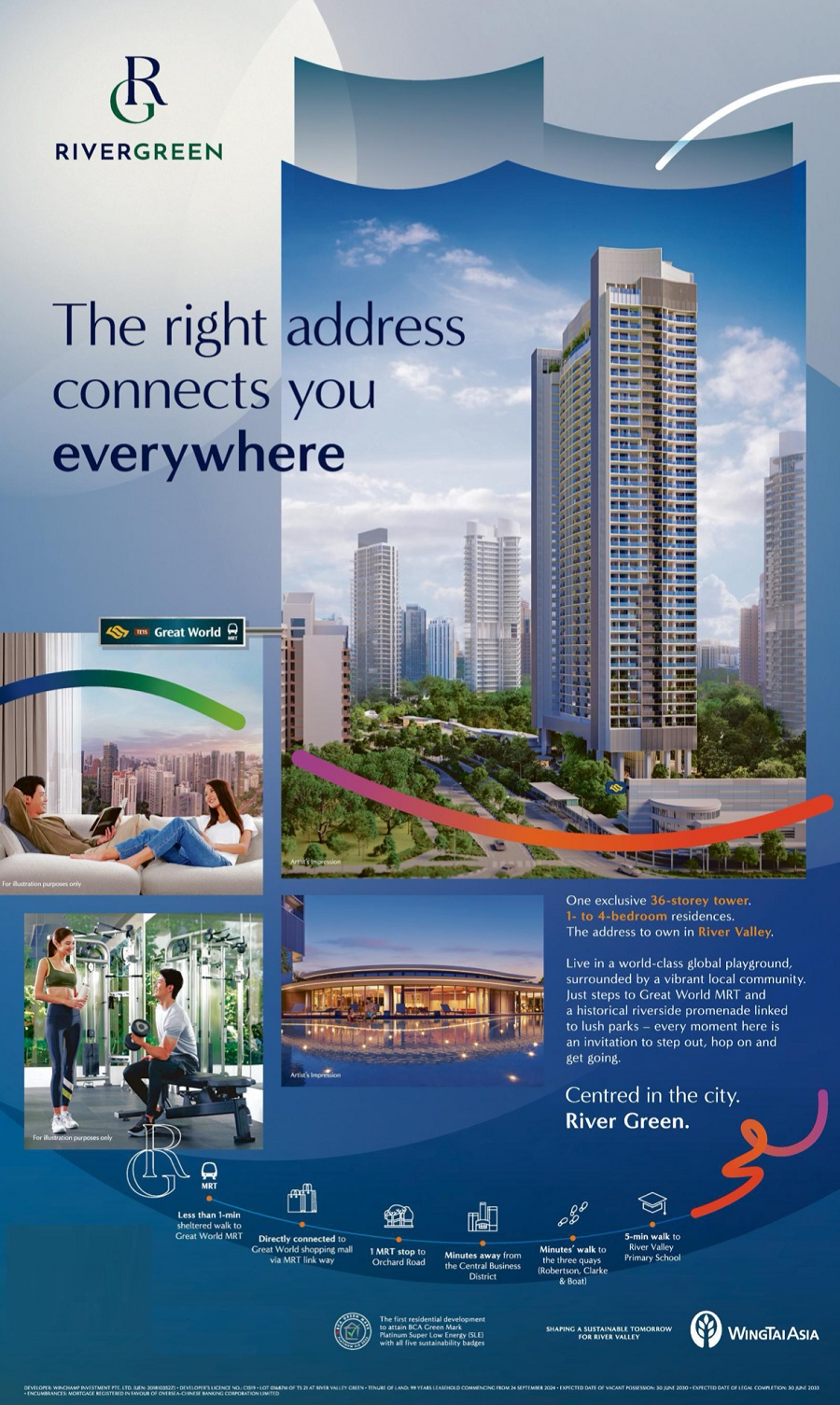 Spanning a sprawling site area of about 9,291 square meters, River Green combines contemporary architecture with lush landscaping. Developed by Wing Tai Holdings, this prime residential property offers breathtaking views of the city skyline and greenery, perfectly balancing urban living with tranquility. Its strategic location near Great World City and Orchard Road enhances its appeal to discerning buyers, while top-notch amenities and proximity to reputable schools make it ideal for families.