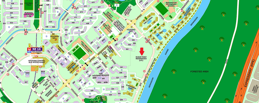 Being in a mature neighbourhood, Riverfront Residences is near to all kinds of amenities and is within walking distance to Hougang Central and Hougang MRT station.