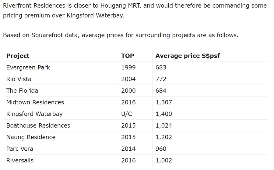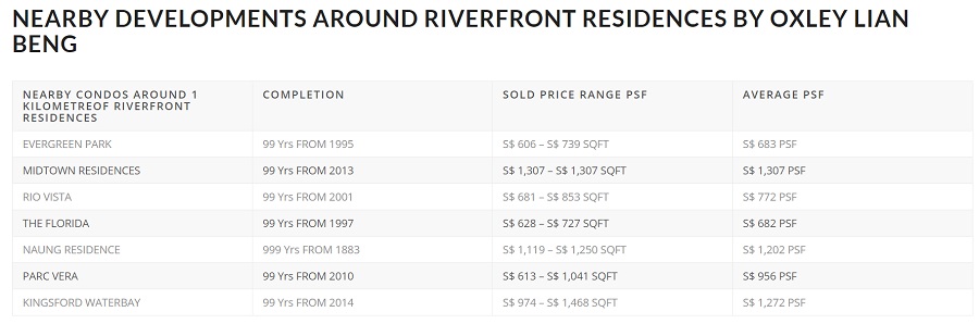 Riverfront Residences Attractive Price Guide ($1,2xx psf to $1,4xx psf)