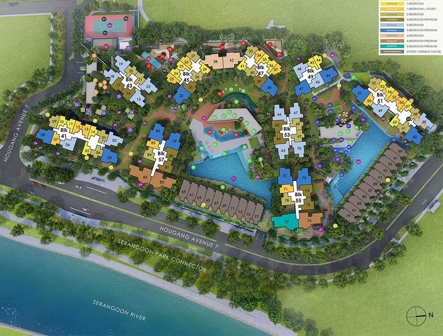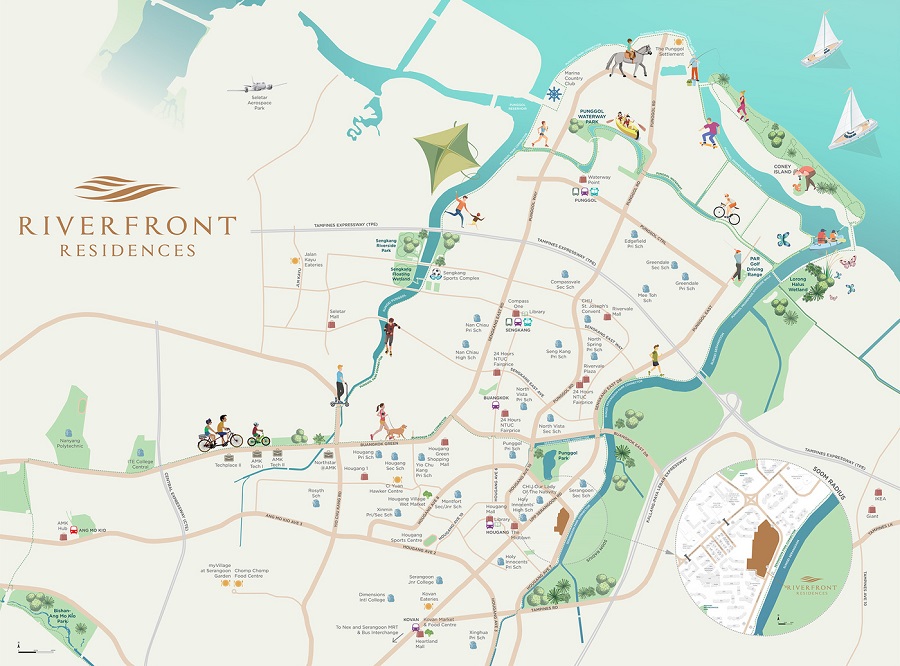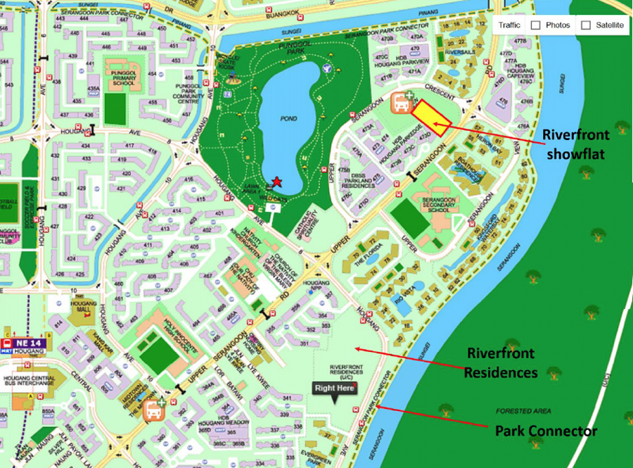 Riverfront Residences is located along Hougang Avenue 7 (off Upper Serangoon Road), in an exclusive area that has an unobstructed, refreshing view of the luscious greenery landscape and with a wide frontage facing the river (approximately 200m).