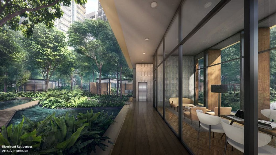 Featuring 3 unique coves - Mangrove Resort Cove, Botanic Cove and River Lifestyle Cove, Riverfront Residences comes with 2 main swimming pools - 75m River Pool and 50m Open Mangrove Lap Pool), 5 function rooms - Co-working Space, Grand Dining, KTV/Movie Room, Gourmet Dining and many more.