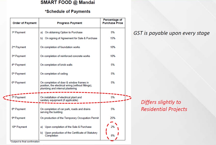 Payment Schedule for Smart Food @ Mandai