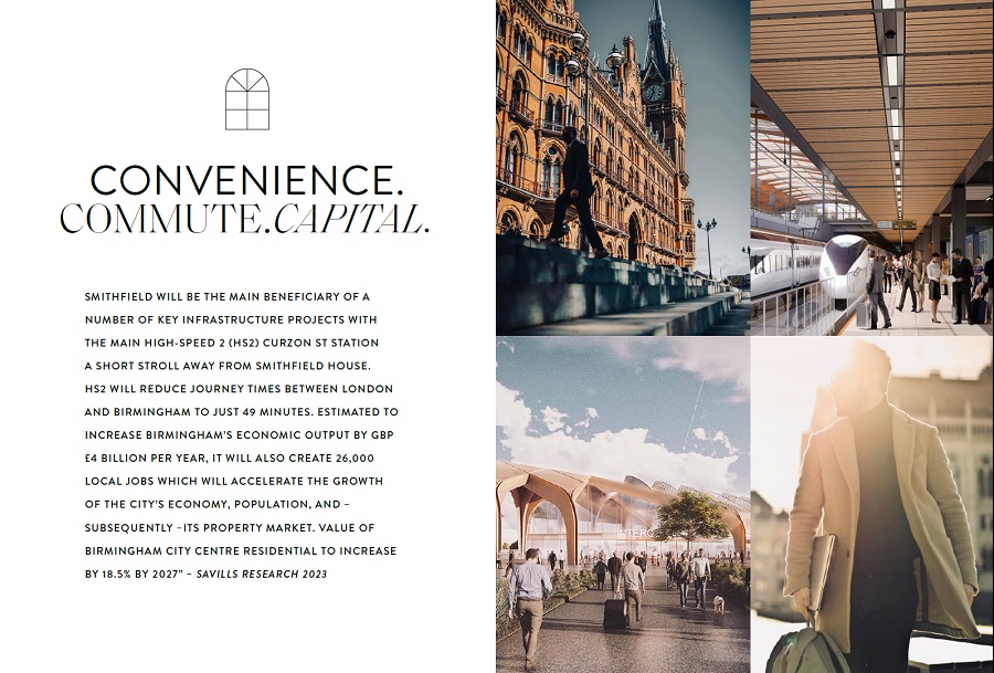 Huge growth brought about by the upcoming London-Birmingham High Speed Rail (HS2). Curzon HS2 station is within walking distance from Smithfield House