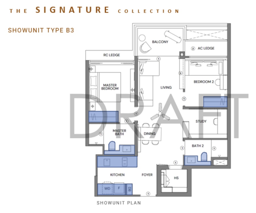 • 4 Bedorom / 4 Bedroom + Study Penthouse – 1539 to 1862 sqft (19 units)