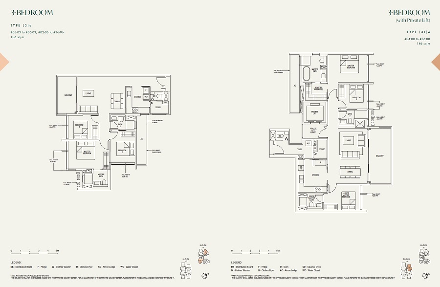 | 3 Bedroom + Private Lift | 142-146sqm / 1528-1572sqft | 68 |