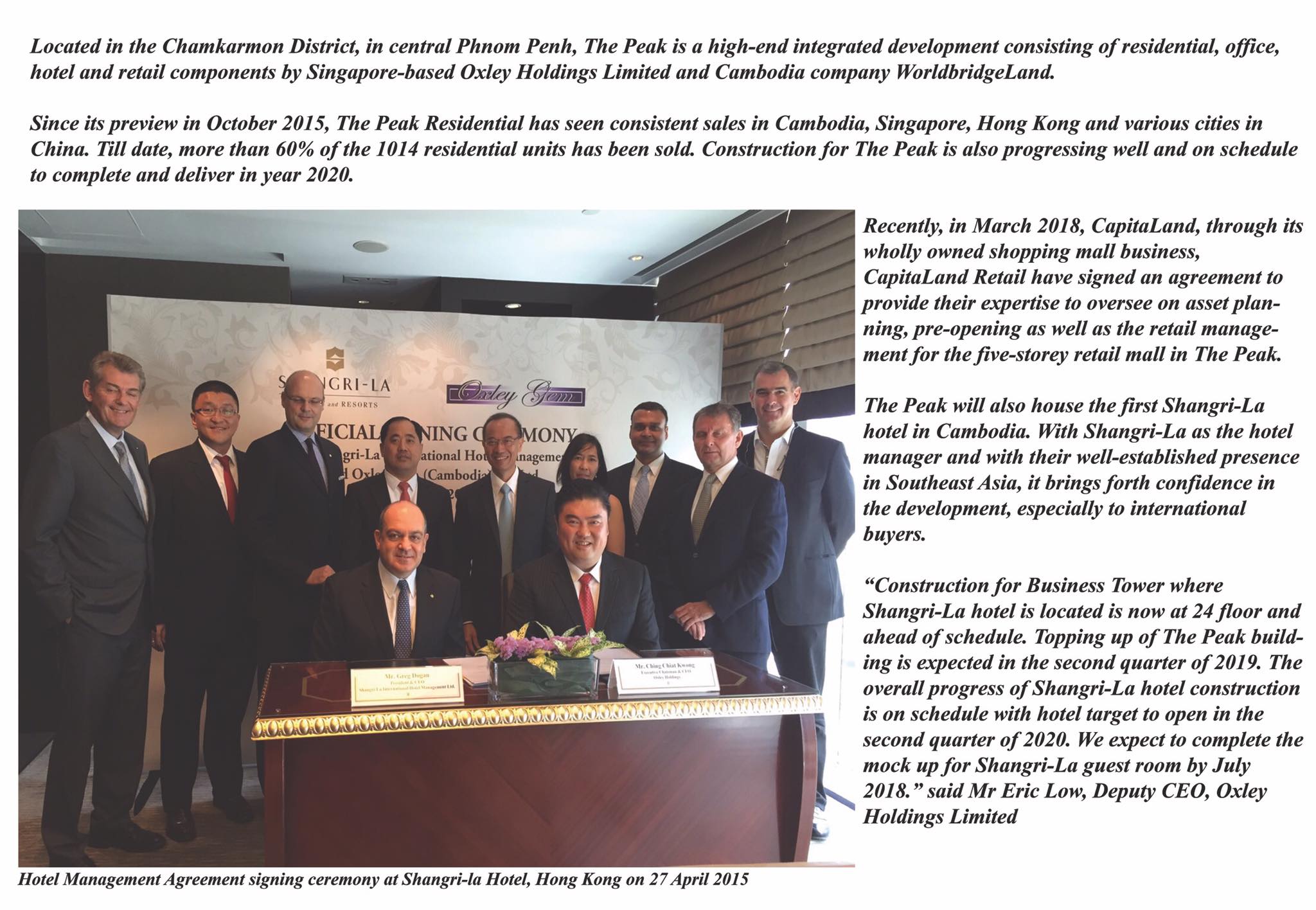 The Peak Retail Mall Shoppes with the Shangri-La Phnom Penh above. By Singapore Developer Oxley, listed on SGX (Singapore Stock Exchange)