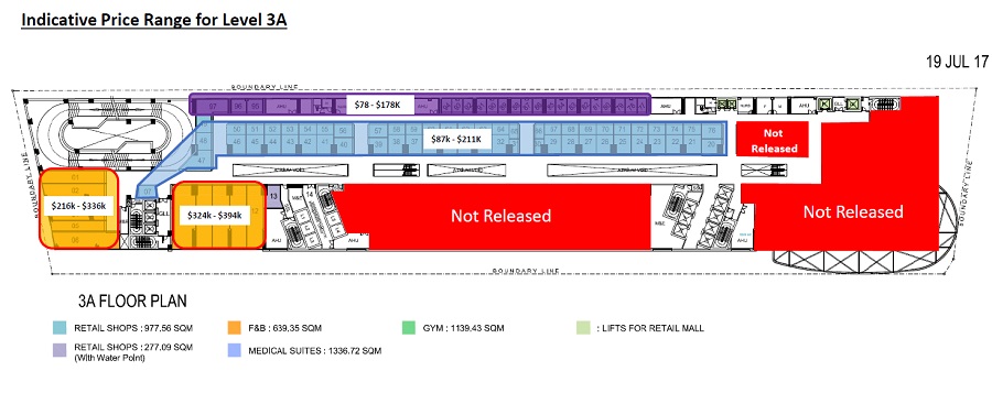 Level 3 Shops average US$800 psf only. F&B average US$550 psf only.