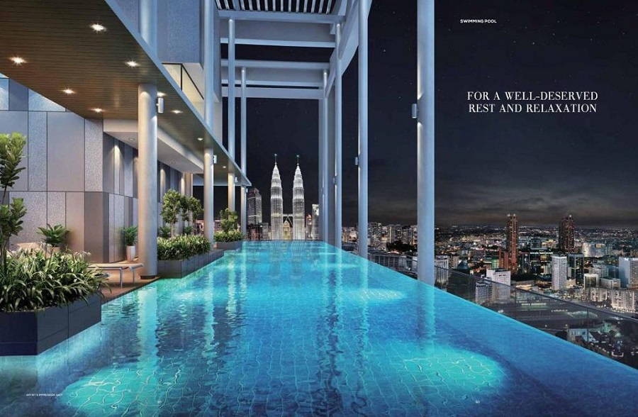 Luxurious facilities spread over 2 skydecks, including the Infinity pool at very high 35th floor, offering unblocked views of the KLCC Petronas Twin Towers
