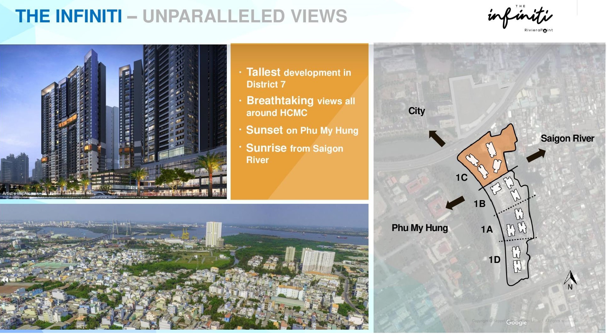 ![]() The Infiniti Riviera PointThe Infiniti Riviera Point by renowned Singapore developer Keppel Land. Live an extraordinary life beyond the ordinary. A luxury condominium integrated with a host of retail amenities, The Infiniti Riviera Point @ Ho Chi Minh City brings you modern resort living with seamless connectivity and convenience. Indulge in the myriad of exceptional facilities that the whole family can enjoy. Located in Ho Chi Minh District 7, you can enjoy unblocked panoramic views of the Saigon River, City & CBD skyline. Intricately designed with natural light and modern contemporary design. Finished with world-renowned brands. The Infiniti Riviera Point enjoys a Strategic Location in a prime location in the heart of District 7, Ho Chi Minh City, Vietnam with many surrounding vital amenities such as restaurants, hospitals, movie theaters, entertainment centers and the future Metro Line station. In close proximity to Phu My Hung Township, an established expatriate community with the best international schools such as Korean, Japanese and Taiwanese International School, Canadian School, Saigon South International School and Royal Melbourne Institue of Technology (RMIT University). The Infiniti Riviera Point's Fantastic Location!