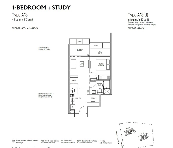 1 Bedroom + Study (517sqft) #14-14 $1.144M